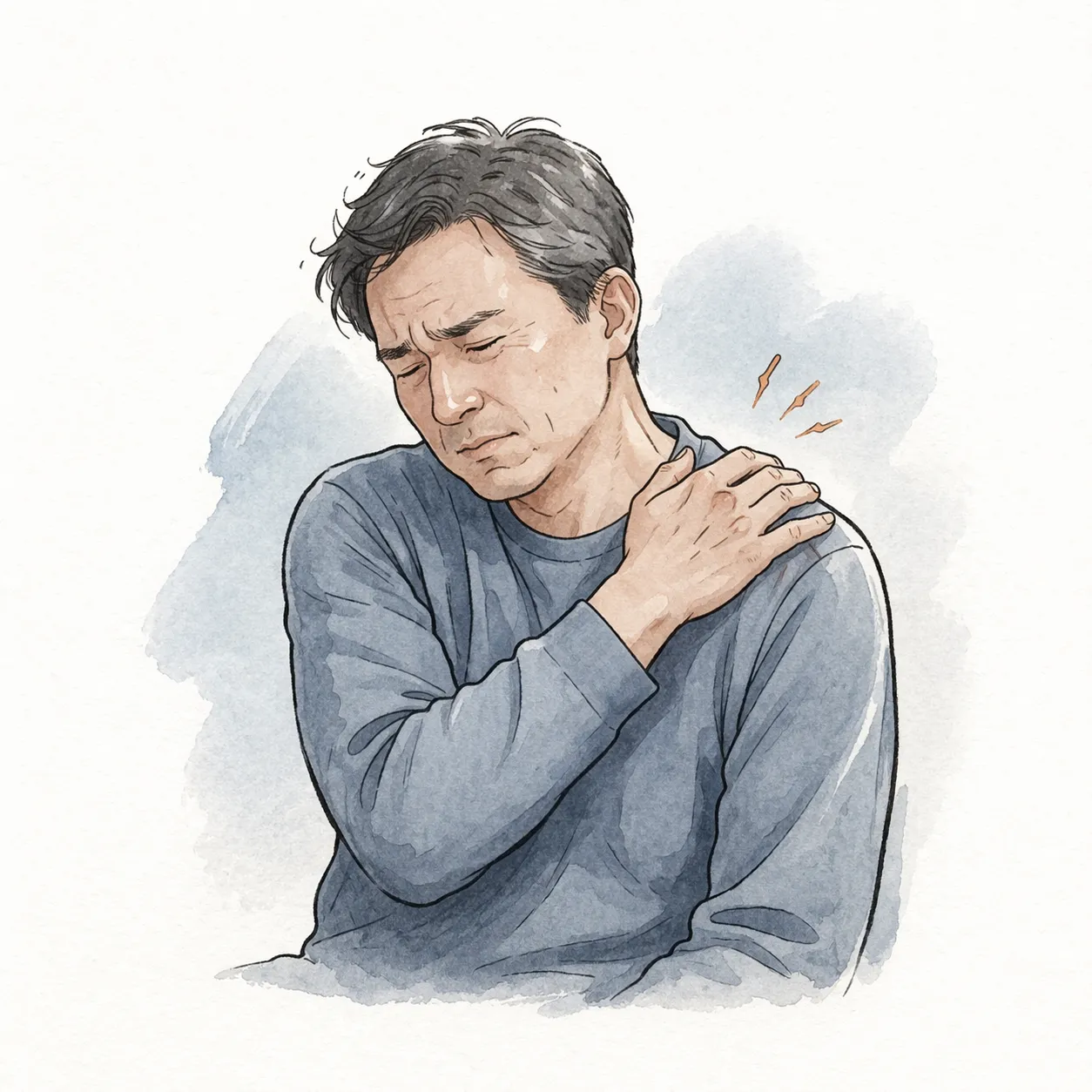 これは40代以降に多く、腕を上げる、後ろに回すといった動作で鋭い痛みが出るのが特徴です。夜間に痛みが強くなるケースも多く、睡眠の質を下げる要因にもなります。