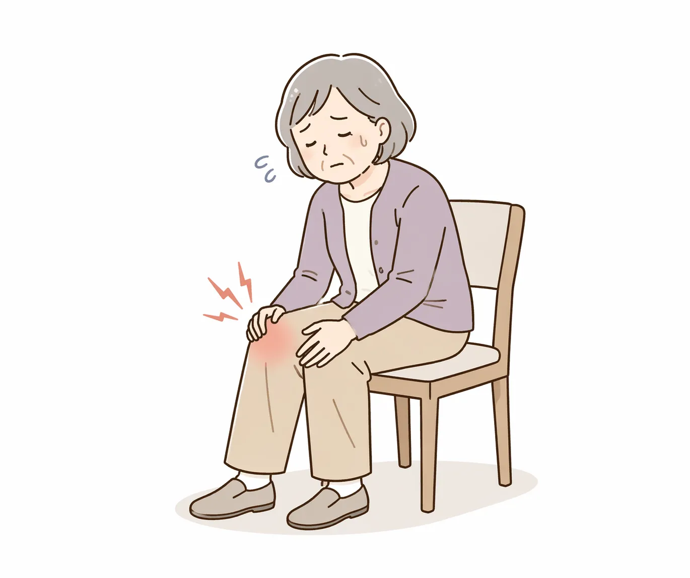 膝の痛みの中でも特に多いのが「変形性膝関節症」です。日本では推定約3,000万人が予備軍とされ、特に50代以降の女性に多く見られます。初期段階では立ち上がるときや歩き始めに違和感がある程度ですが、進行すると階段の昇り降りで強い痛みが出たり、正座ができなくなるなど日常生活に支障が出てきます。